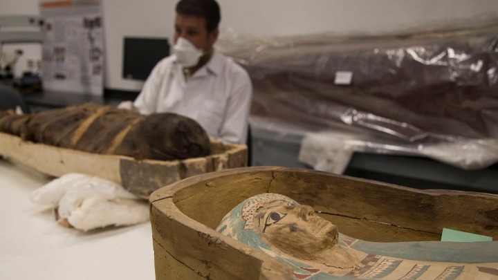 Η εργασία της αποκατάστασής της ξεκίνησε στα μ έσα του Ιουλίου έπειτα από τη μεταφορά της σαρκοφάγου από την Κοιλαδα των Βασιλέων στο Λούξορ, στη νότιο Αίγυπτο, στο Μέγα Μουσείο του Καΐρου.