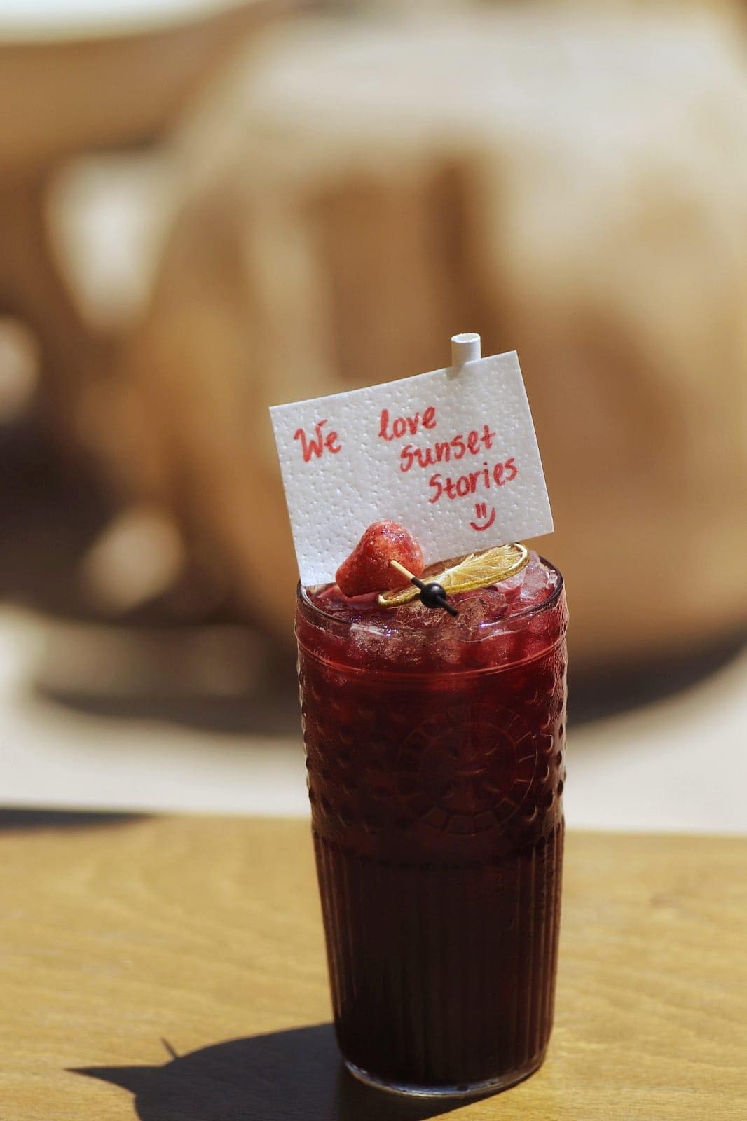 Αν αγαπάτε τα γλύκες γεύσεις αυτό το κοκτέιλ απευθύνεται σε εσάς! Premium βότκα, blueberries και κάρδαμο, εμπλέκονται μαζί με λικέρ κόκκινου πορτοκαλιού σε μια πανδαισία κόκκινου χρώματος. Ένα μπουκέτο από γιασεμί και λουλούδια βιολέτας φέρνουν αρώματα μιας άλλης εποχής στη μύτη μας. Η γαρνιτούρα είναι έκπληξη και τρώγεται καθώς αποτελείται από ένα μήνυμα γραμμένο επάνω σε βρώσιμο χαρτί!