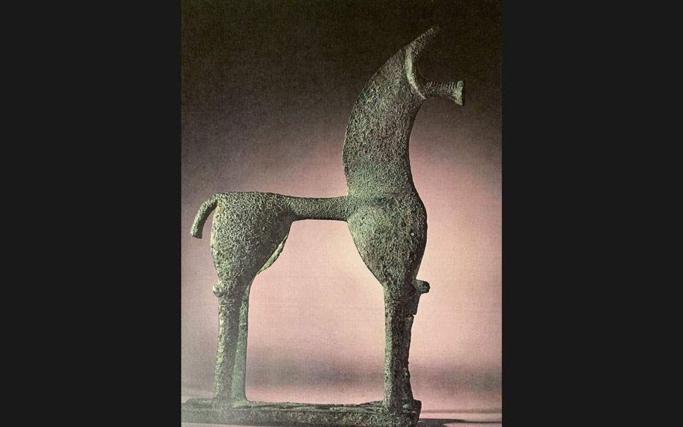 Πρόκειται για χάλκινο ειδώλιο ίππου, που χρονολογείται στον 8ο αι. π.Χ. Όπως αναφέρει το ΥΠΠΟΑ, «επρόκειτο να δημοπρατηθεί από τον οίκο Sotheby’s στη Νέα Υόρκη στις 14 Μαΐου 2018, μαζί με άλλα αντικείμενα από τη συλλογή Barnet, με εκτιμώμενη τιμή εκκίνησης μεταξύ $ 150.000 έως $ 250.000. Αναφορικά με την προέλευση του ειδωλίου, ο οίκος ανέφερε την εξής σειρά διαδοχής του κινητού μνημείου. Δημοπρατήθηκε για πρώτη φορά από τον οίκο Münzen und Medaillen AG στη Βασιλεία της Ελβετίας, στις 6 Μαΐου 1967. Ο Βρετανός αρχαιοπώλης Robin Symes -συνεταίρος του Μιχαηλίδη- το απέκτησε πιθανότατα στην δημοπρασία. Ο Howard και η Saretta Barnet αγόρασαν από τον Robin Symes το αντικείμενο στις 16 Νοεμβρίου 1973 και το κατείχαν έως τον θάνατό τους».