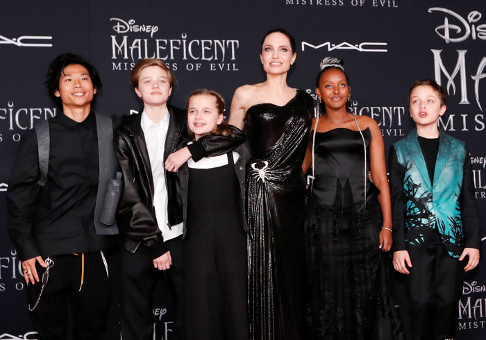 Η Παξ 15, Ζαχάρα 14, Σιλό 13 και τα δίδυμα Νοξ και Βιβιέν 11 ετών ήταν εκεί για να τη στηρίξουν στην συνέχεια της ταινίας «Μαλέφισεντ» και φάνηκε ότι περνούσαν πολύ καλά στο πλευρό της μητέρας τους.