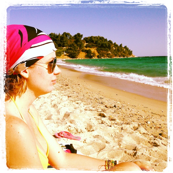 Η Σοφία λοιπόν το φορούσε για χρόνια. Σε καλές και κακές στιγμές. Δεν ξέρω από που το πήρε και ποτέ δεν την ρώτησα φυσικά γιατί όταν πέθανε ήμουν μόλις 10 ετών και δεν είχα τέτοιου είδους απορίες. Επάνω του έχει το όνομα ενός σχεδιαστή με καλλιγραφικά γράμματα και είναι πολύχρωμο. Πριν λίγο το κοιτούσα γιατί το έχω “σαν τα μάτια μου” λες και αν το κρατώ θα εμφανιστεί από κάπου η πρώην κάτοχος του και θα μου χαμογελάσει.
