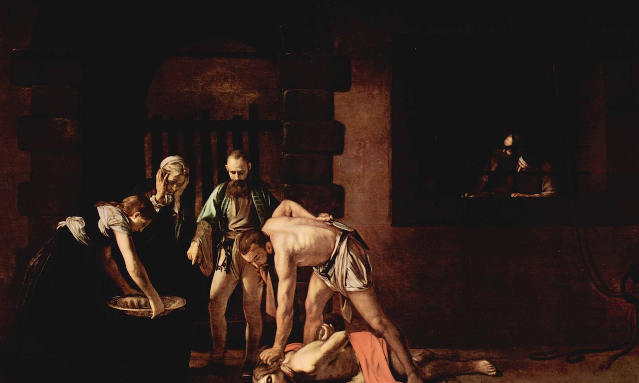 Ένα τεχνητό φως φώτιζε το έργο και τόνιζε ακόμη περισσότερο τα χρώματα του. Μαύρο, κόκκινο και ζεστό κίτρινο με τη χρήση του κιαροσκούρο (που ο καλλιτέχνης απογείωσε) τονίζεται ιδιαίτερα ο δραματικός χαρακτήρας της σύνθεσης. Το έργο που ζωγραφίστηκε στη Μάλτα, ήταν παραγγελία των Ιπποτών της -στο σώμα των οποίων για λίγο ανήκε ο καλλιτέχνης- για το ιερό του καθεδρικού ναού του Αγίου Ιωάννη. Παρατηρώντας το έργο, δεν μπορείς να ξεφύγεις από αυτό, καθώς η αίσθηση που σου δημιουργείτε είναι πως κυριαρχεί στο χώρο. Το θέμα και το μέγεθος του σε συνεπαίρνουν.