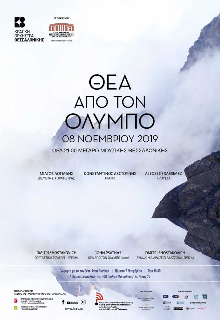 Στις 8 Νοέμβρη ο διεθνούς φήμης συνθέτης και Έλληνας της διασποράς John Psathas θα παρουσιάσει μαζί με την Κρατική Ορχήστρα Θεσσαλονίκης το έργο που εμπνεύστηκε στη Μηχανιώνα «Θέα από τον Όλυμπο» για μια βραδιά στο Μέγαρο Μουσικής.