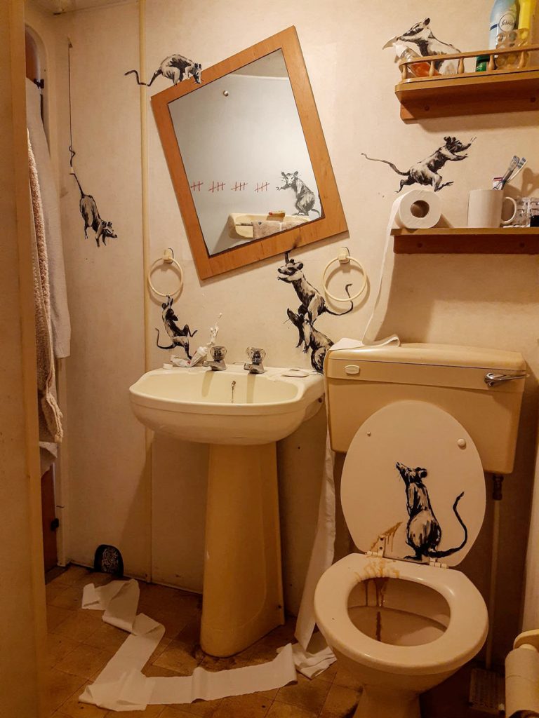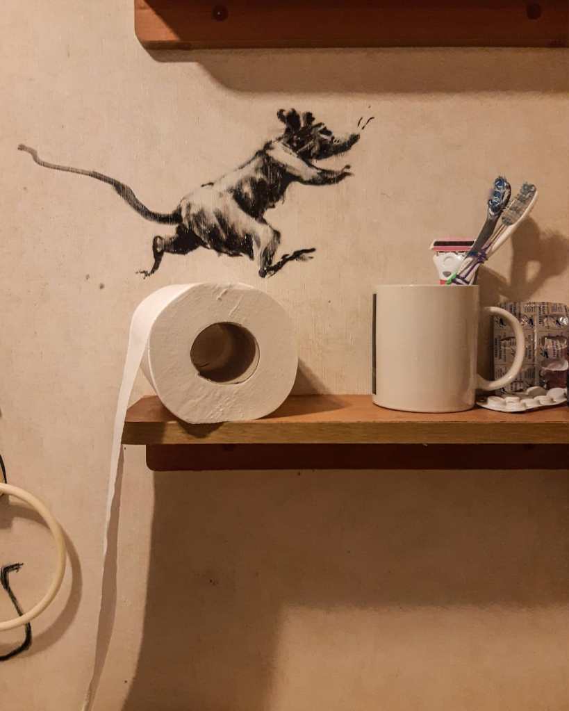 Όπως και η υπόλοιπη ανθρωπότητα – ή, σχεδόν η υπόλοιπη – ο παγκοσμίου φήμης καλλιτέχνης δρόμου και ακτιβιστής Banksy έθεσε τον εαυτό του σε εκούσια απομόνωση. Για ένα διάστημα – κανείς δεν ξέρει πόσο θα κρατήσει – δεν θα παρεμβαίνει καλλιτεχνικά σε δημόσιους χώρους. Η δημιουργική φλόγα όμως δεν καταλαβαίνει από περιορισμούς και ο Banksy παρενέβη στο υποτιθέμενο λουτρό του σπιτιού του.