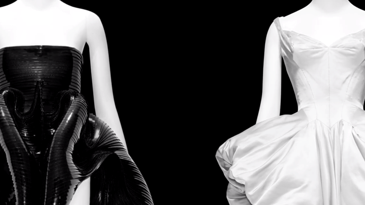 Τα ρούχα που προέρχονται από το παρελθόν είναι μαύρο, καθώς με αυτόν τον τρόπο οι δημιουργοί της έκθεσης θέλησαν να δώσουν έμφαση στις σιλουέτες και την εξέλιξή τους. Αντίστοιχα, τα σύγχρονα είναι είτε μαύρα είτε λευκά και δηλώνουν τα κοινά στοιχεία και τη δυνατή σύνδεσή τους με το παρελθόν, ακόμα και όταν αυτή δεν είναι τόσο εμφανής.
