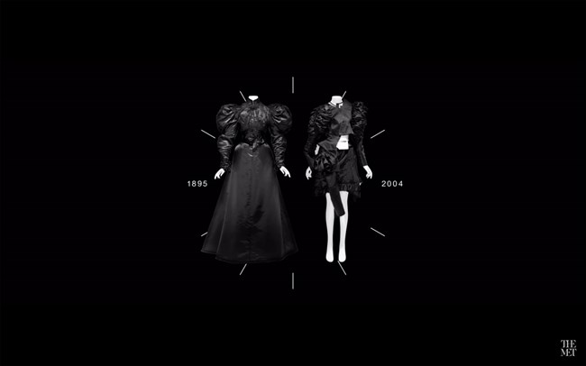 Κάθε λεπτό της εικονικής περιήγησης περιλαμβάνει ζευγάρια από ρούχα. Το πρώτο ρούχο αντιπροσωπεύει την αρχή, τη γέννηση της ιδέας, ενώ το δεύτερο, λειτουργεί σαν απόδειξη της διάρκειάς της καθώς απεικονίζει τη σύγχρονη μετάφρασή της, έτσι όπως τη συνέλαβε κάποιος δημιουργός. Μεταξύ τους συνδέονται με διαφορετικούς τρόπους, με μια γραμμή, με ένα μοτίβο, μια καινοτομία. Ένα μαύρο μεταξωτό φόρεμα απο τα 1870s για παράδειγμα, συνδυάζεται με τη Bumster Skirt του Alexander McQueen από το 1995. Μία άλλη δημιουργία της Mrs Arnold του 1895 συνδέεται με αυτή του οίκου Comme Des Garcons από το 2005, ένα φόρεμα Morin Blossier του 1902 με ένα σχέδιο του Louis Vuitton και του Nicolas Ghesquière του 2018 και η λίστα συνεχίζεται.