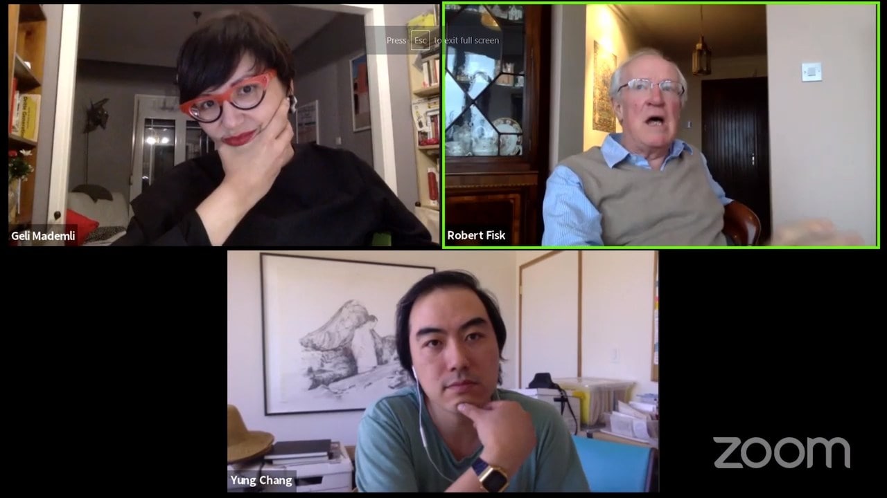 Τον λόγο πήρε αρχικά η συντονίστρια της συζήτησης Γκέλυ Μαδεμλή, η οποία καλωσόρισε θερμά τους δύο συνομιλητές, δίνοντας τη σκυτάλη στη Γενική Διευθύντρια του Φεστιβάλ, Ελίζ Ζαλαντό. Η κ. Ζαλαντό, αφότου ευχαρίστησε θερμά τους δύο προσκεκλημένους του Φεστιβάλ, στάθηκε στην πολύτιμη παρακαταθήκη της επαγγελματικής σταδιοδρομίας του Ρόμπερτ Φισκ, που πρεσβεύει τις πατροπαράδοτες αξίες της δημοσιογραφικής έρευνας, οι οποίες αποκτούν ακόμη μεγαλύτερη σημασία στη σημερινή εποχή των fake news και της παραπληροφόρησης. Επιπλέον, δεν παρέλειψε να ευχαριστήσει τον Γιούνγκ Τσανγκ για τη συμμετοχή του στο πρότζεκτ Χώροι που οργάνωσε το Φεστιβάλ στη διάρκεια της καραντίνας, υπενθυμίζοντας στο κοινό που παρακολουθούσε τη συζήτηση πως η μικρού μήκους ταινία του καναδού σκηνοθέτη είναι διαθέσιμη στο κανάλι του Φεστιβάλ στο YouTube.