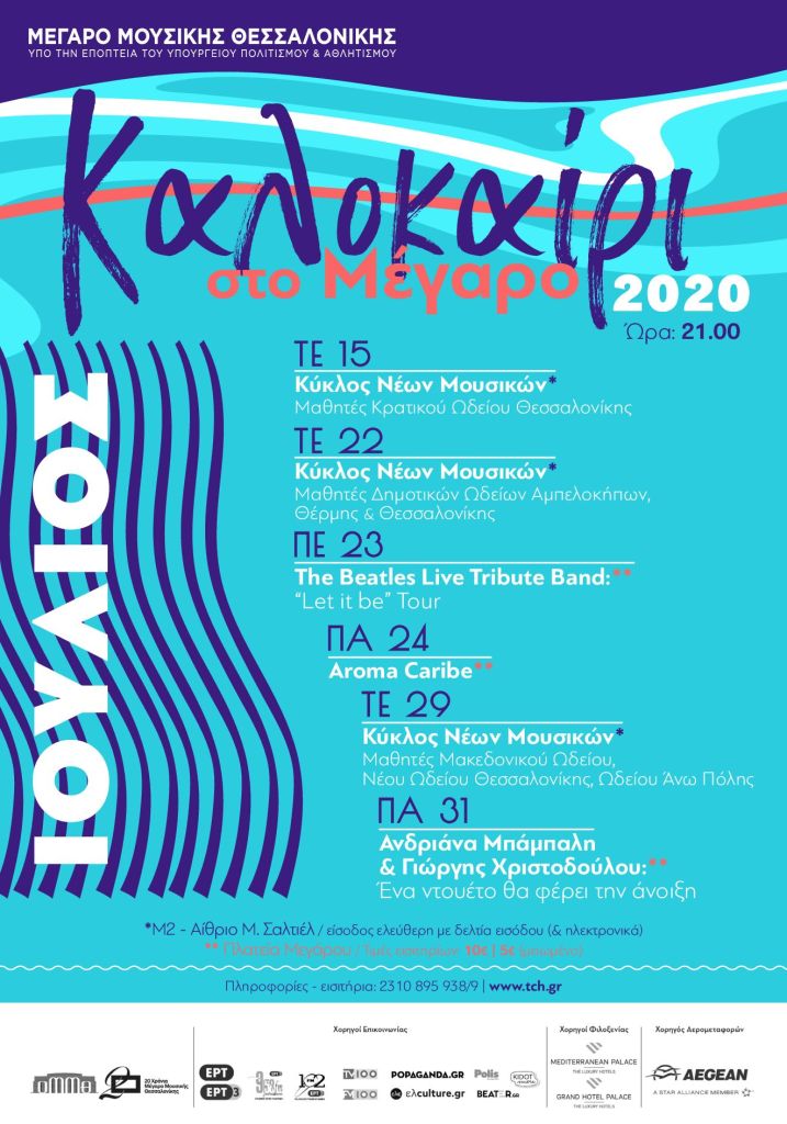 Έπειτα από τέσσερις μήνες έντονης μεν αλλά αποκλειστικά διαδικτυακής δραστηριότητας, το Μέγαρο Μουσικής Θεσσαλονίκης επιστρέφει στις ζωντανές εκδηλώσεις και καλεί όλο το κοινό, που το τελευταίο διάστημα στερήθηκε τη συγκίνηση των συναυλιών, να απολαύσει ένα πρόγραμμα πλούσιο σε ποικιλία και περιεχόμενο. Οι υπέροχοι καλοκαιρινοί χώροι του Μεγάρου θα γεμίσουν με εξαίσιους ήχους γνωστών και αγαπημένων καλλιτεχνών – από κλασική μουσική μέχρι ελληνικό και διεθνές τραγουδιστικό ρεπερτόριο και από λαϊκή μουσική μέχρι ροκ, σουίνγκ ή λάτιν βραδιές.