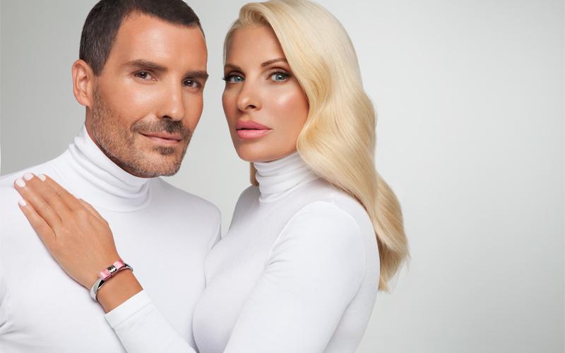 Φέτος, η εμβληματική ροζ κορδέλα του βραχιολιού που σχεδίασε ο Δούκας, πλαισιώνεται από μεταλλικό διακοσμητικό, που φέρει εσώγλυφο το διεθνές σήμα του Pink Ribbon, δημιουργώντας ένα κομψό φιόγκο στο κέντρο του βραχιολιού. Το ροζ σατέν με τη μεταξένια υφή, σε συνδυασμό με το γυαλιστερό μέταλλο στο σώμα του βραχιολιού, δημιουργούν συναισθήματα αφύπνισης, ευαισθησίας και δύναμης, μηνύματα που χαρακτηρίζουν την εκστρατεία για τον καρκίνο του μαστού, ενώ το οβάλ σχήμα του βραχιολιού “ περικλείει” αρμονικά τον καρπό, προτρέποντας μας να γίνουμε και φέτος μία μεγάλη “ αγκαλιά” για τον τόσο σημαντικό αυτό σκοπό.