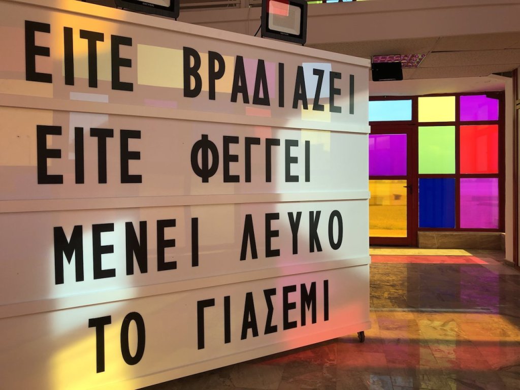 Παράλληλα, μέσα στον πρώην Βρεφονηπιακό Σταθμό, έχει τοποθετηθεί ένας φωτεινός πίνακας, πάνω στον οποίο θα τοποθετούνται κάθε μέρα στίχοι, ποιήματα, μικρά κείμενα.