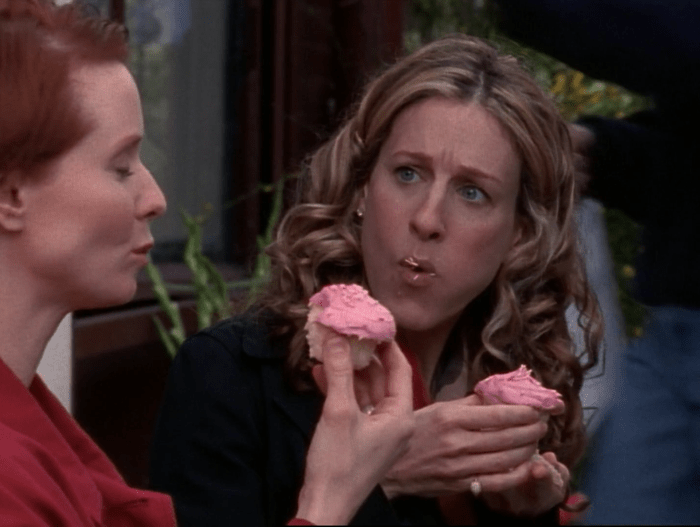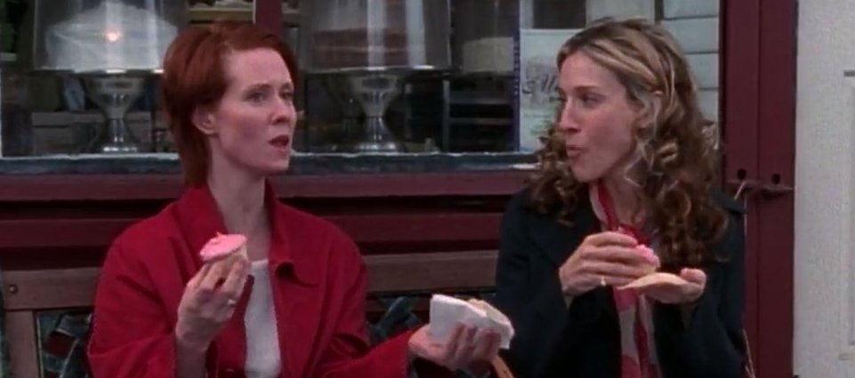 Οι θαυμαστές της σειράς λοιπόν, θα θυμούνται στο επεισόδιο «No Ifs, Ands, or Butts» της τρίτης σεζόν την Carrie και την Miranda να απολαμβάνουν ένα ροζ cupcake έξω από ένα ζαχαροπλαστείο Magnolia Bakery μιλώντας για τον τοτε έρωτα της Carrie, τον Aidan.