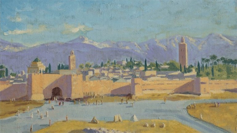 Βλέποντας το τζαμί του 12ου αιώνα με φόντο τα Όρη του Άτλαντα, ο Ρούζβελτ εντυπωσιάστηκε σε τέτοιο βαθμό που ο Τσώρτσιλ αποφάσισε να ζωγραφίσει τη σκηνή και να του δωρήσει το έργο ως χειρονομία φιλίας. Ο πίνακας πέρασε στον Έλιοτ Ρούζβελτ, τον γιο του Φράνκλιν Ντιλέινο, και η οικογένεια Τζολί τον απέκτησε το 2011 από το παλαιοπωλείο M.S. Rau στη Νέα Ορλεάνη.