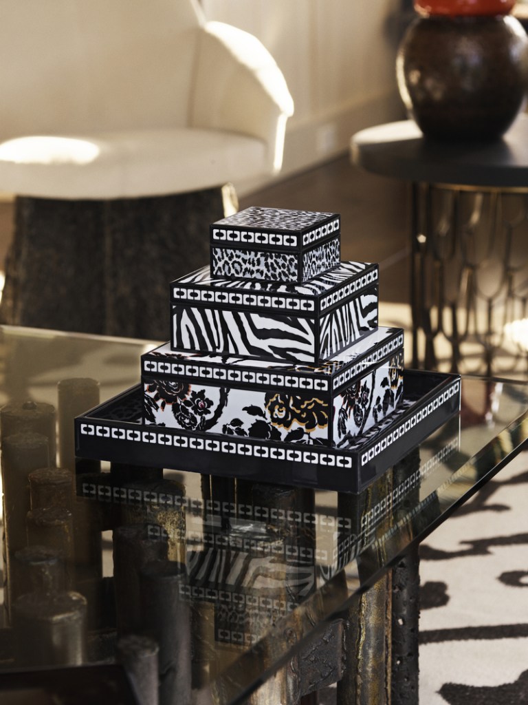 Η συνεργασία Diane von Furstenberg x H&M HOME μας παροτρύνει να εκφράσουμε το προσωπικό μας στυλ και να γίνουμε οι interior designers του σπιτιού μας. Στα βασικά κομμάτια περιλαμβάνονται μάλλινες κουβέρτες-ριχτάρια διπλής όψης για το κρεβάτι ή τον καναπέ, εμπριμέ διακοσμητικά κουτιά, για τους λαμπερούς μας θησαυρούς, δίσκοι με επένδυση λάκας και μια σειρά κεριών μέσα σε εμπριμέ γυάλινα δοχεία, τα οποία θα αρωματίσουν υπέροχα όλο το σπίτι.