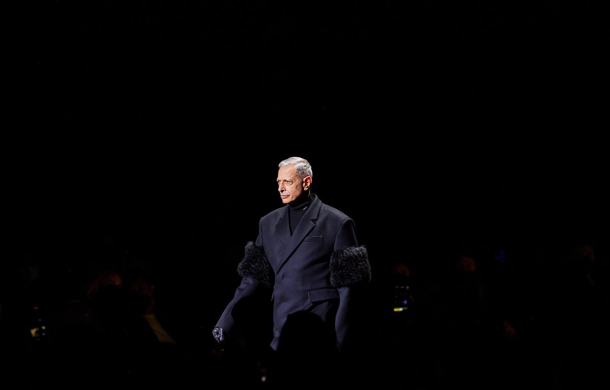 Τα βλέμματα, φυσικά, έκλεψε και ο κωμικός Jeff Goldblum, ο οποίος περπάτησε στην πασαρέλα, κλείνοντας την επίδειξη και φορώντας ένα εξίσου stylish σύνολο, το οποίο αποτελούνταν από ένα σκούρο παλτό με ενδιαφέρουσες λεπτομέρειες από γούνα στο τελείωμα του αλλά και στους αγκώνες.