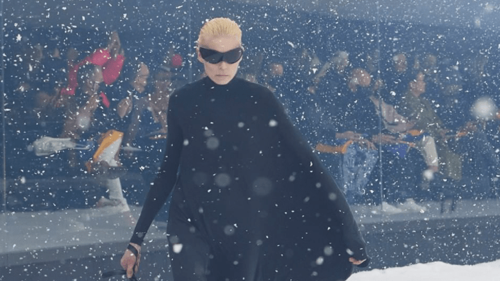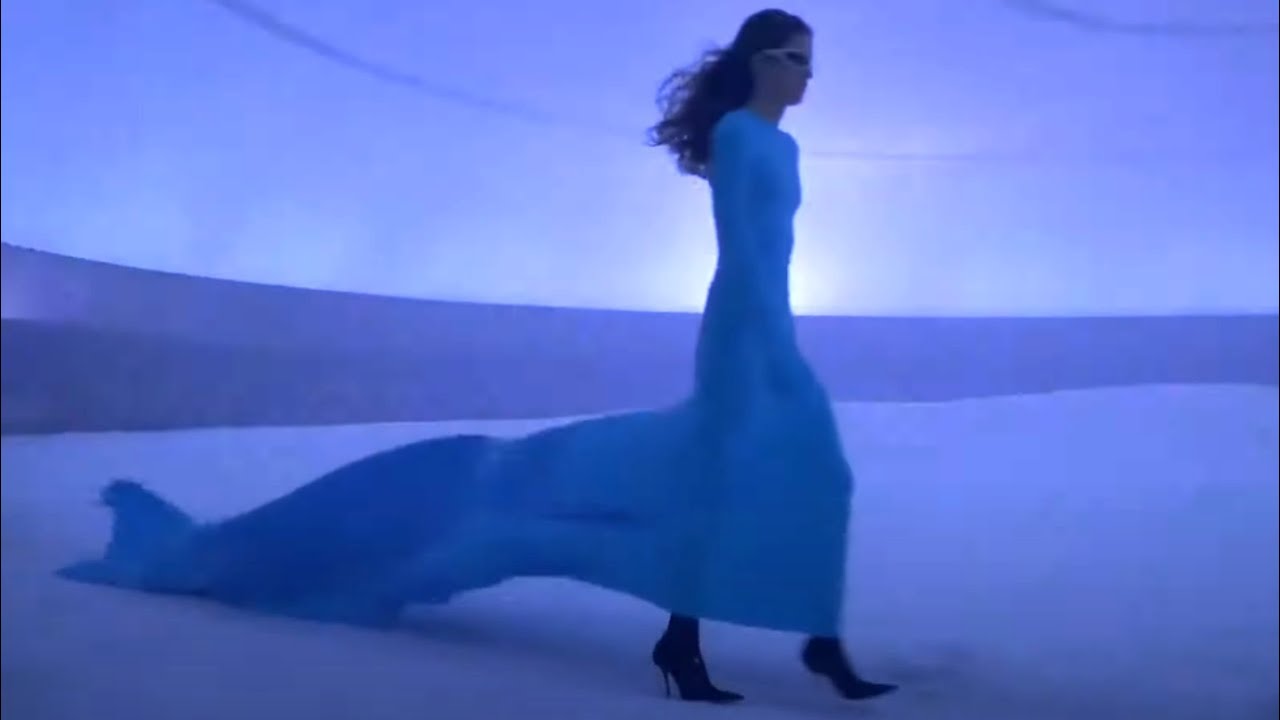 Τα μαλλιά, τα ρούχα και ό,τι αξεσουάρ είχαν μαζί τους παρασύρονταν από την τεράστια δύναμη του ανέμου. Η πρέσβειρα του οίκου Κιμ Καρντάσιαν εμφανίστηκε στην επίδειξη τυλιγμένη από πάνω μέχρι κάτω με κίτρινη κολλητική ταινία με το λογότυπο του οίκου και συγκέντρωσε πάνω της τα φλας των φωτογράφων. «Εμείς ως brand πρέπει να κάνουμε κάτι… δεν μπορούμε να πάρουμε τα όπλα και να πάμε να πολεμήσουμε εκεί, αλλά μπορούμε να χρησιμοποιήσουμε τις φωνές μας» δήλωσε ο Ντέμνα Γκβασάλια στο Reuters.