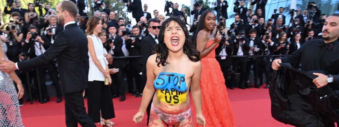 Αναστάτωση προκλήθηκε σήμερα στο κόκκινο χαλί του Κινηματογραφικού Φεστιβάλ των Καννών όταν εμφανίστηκε μια γυμνή ακτιβίστρια που θέλησε να αποδοκιμάσει τη ρωσική εισβολή στην Ουκρανία, ενώ χρειάστηκε η επέμβαση των ανδρών ασφαλείας για την απομάκρυνσή της.