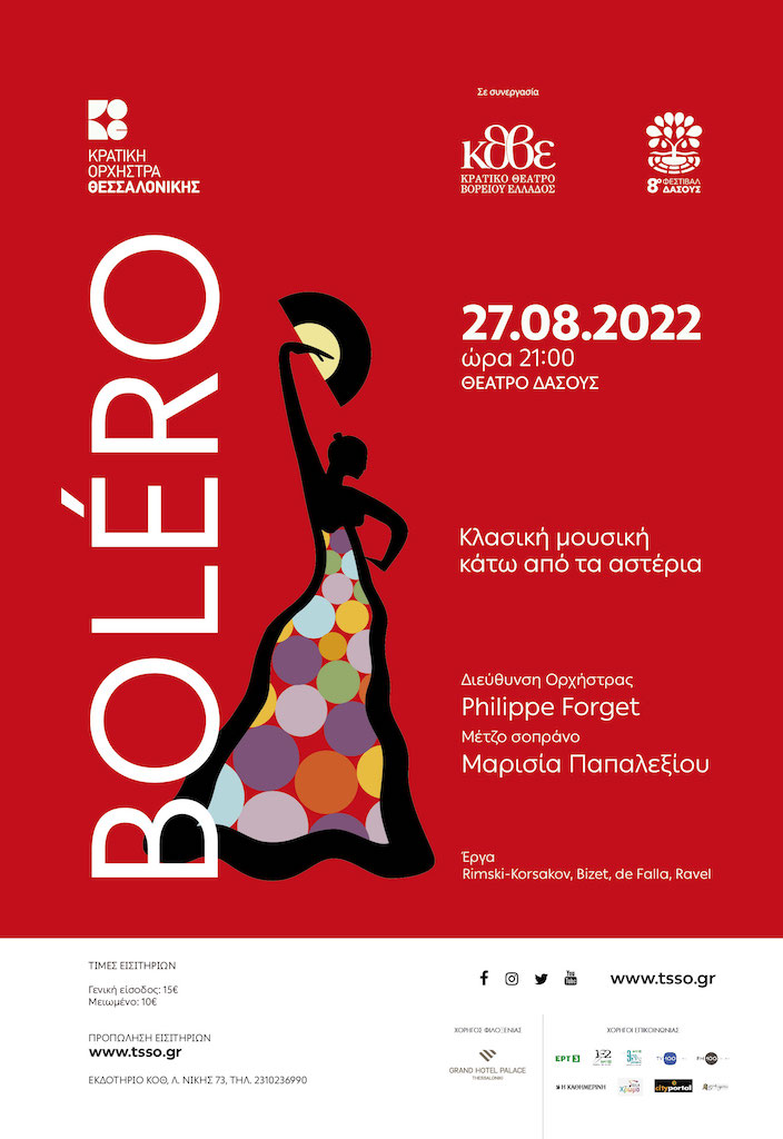 Η Κρατική Ορχήστρα Θεσσαλονίκης εμφανίζεται στο 8ο Φεστιβάλ Δάσους με ένα συναρπαστικό πρόγραμμα, γεμάτο αγαπημένες μελωδίες και γνωστούς σπανιόλικους και τσιγγάνικους ρυθμούς, σε μία μαγική μουσική βραδιά κάτω από τ’ αστέρια. Την Κ.Ο.Θ. διευθύνει ο αγαπημένος Γάλλος μαέστρος Philippe Forget. Συμπράττει η διακεκριμένη Ελληνίδα μεσόφωνος Μαρισία Παπαλεξίου.