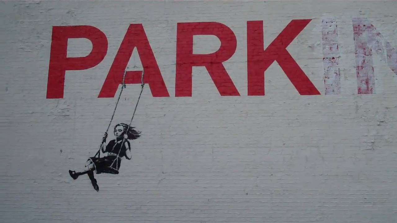 Κτίριο στο Λος Άντζελες με έργο του Banksy που απεικονίζει κορίτσι σε κούνια που φαίνεται να κρέμεται από το γράμμα Α σε προϋπάρχουσα πινακίδα «Parking» θα πωληθεί τον Οκτώβριο σε δημοπρασία.