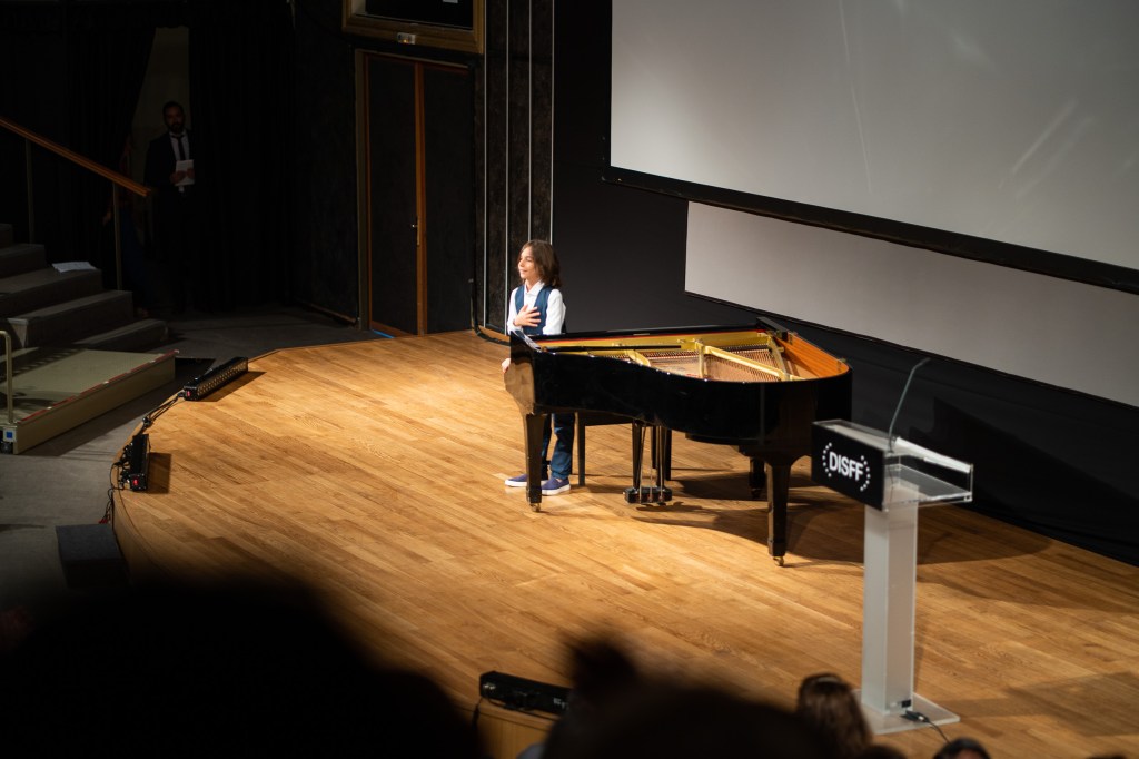 Η βραδιά άνοιξε με τον 10χρονο πιανίστα-φαινόμενο Στέλιο Κερασίδη, που μάγεψε τους προσκλεκλημένους με την δεξιοτεχνία του στο πιάνο, παρουσιάζοντας και δύο δικές του δημιουργίες –η τρίτη του σύνθεση, μάλιστα, εμπνευσμένη, όπως είπε, από το αύριο της ανθρωπότητας, «έντυσε» μοναδικά εικόνες από ταινίες.