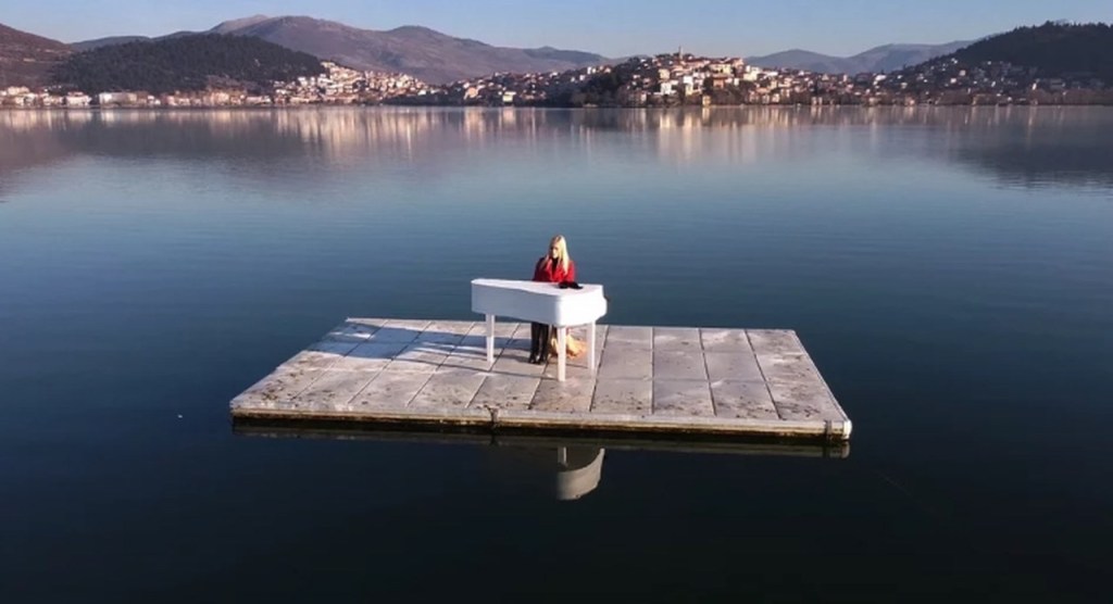 Η γνωστή πιανίστα Έλενα Ξυδιά έπαιξε πιάνο στη μέση της λίμνης της Καστοριάς δημιουργώντας μαζί με τον Λαρισαίο σκηνοθέτη Πασχάλη Μάντη ένα υπέροχο θέαμα.