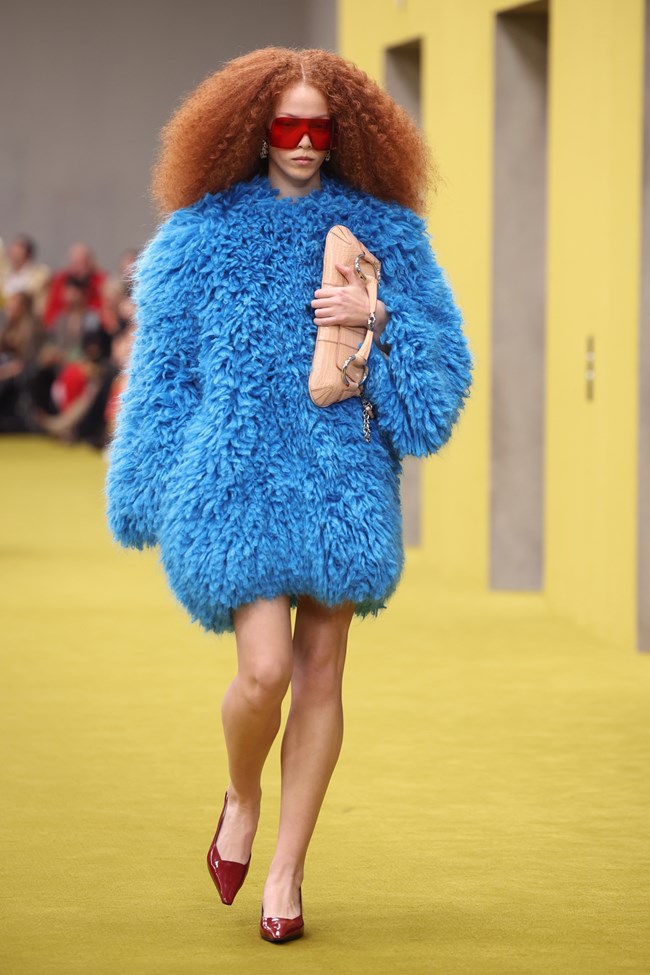 Επιπέον είδαμε και μια «αντιγραφή» από τις συλλογές άλλων οίκων μόδας όπως από Prada (βλ. τα παλτό με τους τονισμένους ώμους ή αυτό με τα γούνινα περιβραχιόνια που είδαμε στην Φ/Χ 2022-23), λίγο από Valentino (βλ. το hot pink φόρεμα και την κάπα με τα ασημί κρόσσια που θα μπορούσαν ανήκουν στην Pink PP ή την πρόσφατη Le Club Couture αντίστοιχα), λίγο από Chanel (αναζητήστε το μάξι coat dress σε μπλε που θα μπορούσε να είχε θέση την haute couture Φ/Χ 2022/23, αλλά βεβαίως και το μικροσκοπικό σουτιέν που μοιάζει να έχει ξεπηδήσει από την παλαιότερη A/K 1996), λίγο από Balenciaga (δείτε το φόρεμα με την tulip skirt που θυμίζει εποχή Nicolas Ghesquière στον οίκο και τη μαύρη off the shoulder καμπαρντίνα), λίγο από τη relaxed κομψότητα της Bottega Veneta (και τα sheer sequin slip dresses της συλλογής Φ/Χ 2022-23) κ.ο.κ., η συλλογή θα μπορούσε να αποτελεί μία ρετροσπεκτίβα στις πιο επιδραστικές στιγμές της μόδας και τους οίκους της δεκαετίας που άνοιξε το 2020.