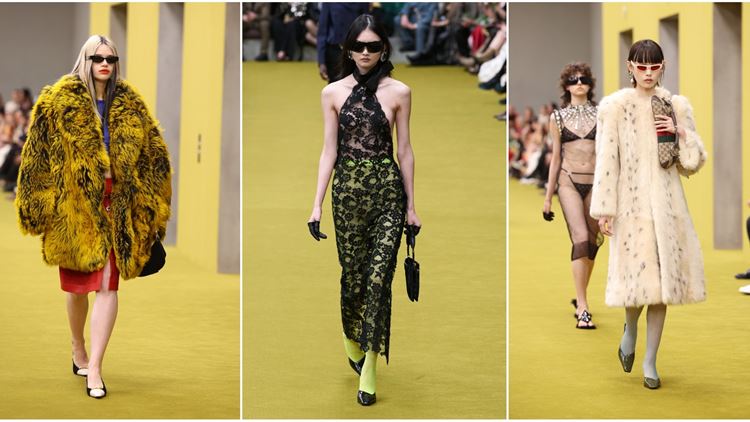 Στη συλλογή πρωταγωνίστησε το παρελθόν του οίκου και συγκεκριμένα η «Tom Ford era» με τα μικροσκοπικά bras και τα στρινγκ εσώρουχα, οι διαφάνειες, τα velvet slouchy παντελόνια και τα σατέν πουκάμισα, οι πληθωρικές γούνες, ακόμα και εκείνο το μάξι δαντελένιο φόρεμα το οποίο είναι συνδυασμένο με καλσόν σε λάιμ πράσινο – ως μία μεταγενέστερη βερσιόν του αντίστοιχου look με μίνι δαντελένιο φόρεμα και πράσινο hot pants από τη συλλογή της Άνοιξης 1996, όλα μοιάζουν βγαλμένα από τη χρυσή εποχή του Gucci στα ’90s.