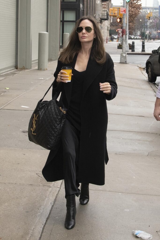 Στη Νέα Υόρκη εθεάθη η Angelina Jolie και ακόμη μια φορά έδωσε μαθήματα στυλ. Η ηθοποιός ξέρει πώς να προσθέσει ενδιαφέρον σε ένα μαύρο total look, χάρη στις μικρές λεπτομέρειες. Το outfit περιελάμβανε ένα υφασμάτινο παλτό και ένα σατέν φόρεμα.