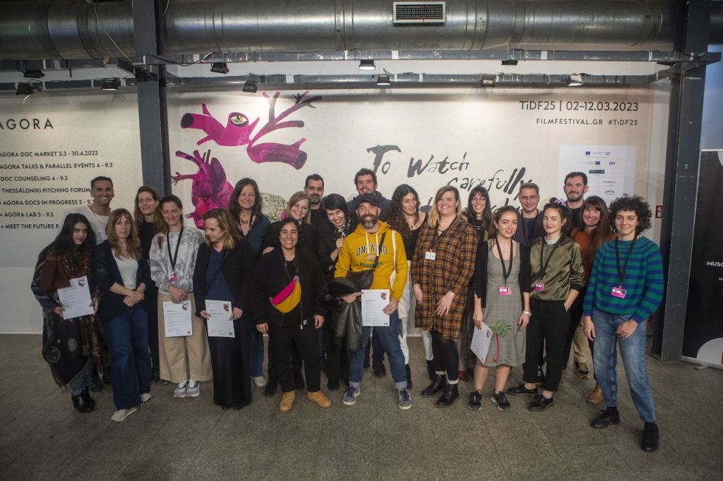 Τους παρευρισκόμενους καλωσόρισε η επικεφαλής της Αγοράς, Αγγελική Βέργου. «Τις τελευταίες ημέρες, λόγω του δυστυχήματος στα Τέμπη, βιώσαμε έντονα συναισθήματα. Ωστόσο, είναι τιμή μας που υποδεχτήκαμε τόσο τα πρότζεκτ σας όσο και όλους εσάς στο 25ο Φεστιβάλ Ντοκιμαντέρ Θεσσαλονίκης. Πριν ξεκινήσουμε, θέλω να ευχαριστήσω την ομάδα της Αγοράς. Χωρίς την ενέργεια, τα χαμόγελα και τη σκληρή δουλειά σας, όλο αυτό δεν θα ήταν δυνατό να συμβεί. Συγχαρητήρια, λοιπόν, στον Θάνο, στην Έρρικα, στη Δήμητρα, στην Κατερίνα, στη Μελίν, στη Σεργίνα, στη Ραχήλ, στη Ραφαέλλα, στη φανταστική ομάδα παραγωγής μας, στους σπουδαίους εθελοντές μας, στους συναδέλφους στο τμήμα Πληροφορικής, στο τμήμα Επισκεπτών, στο τμήμα Οπτικοακουστικών, στο κινηματογραφικό μας συνεργείο, καθώς και στο ελληνικό και στο διεθνές πρόγραμμα».