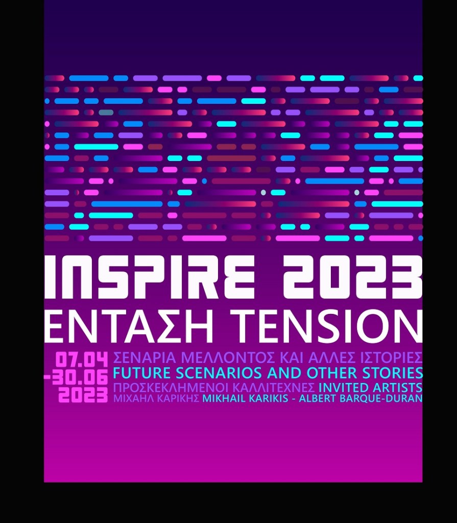 Μέσα από μεθοδολογίες βασισμένες στις επιστήμες του μέλλοντος, οι οποίες διερευνούν πιθανά, εύλογα και εφικτά μέλλοντα, το Inspire Project 2023 με τίτλο «Ένταση. Σενάρια μέλλοντος και άλλες ιστορίες» εστιάζει φέτος σε μελλοντικά σενάρια, όπως τα προσλαμβάνουν νέοι καλλιτέχνες από ένα ευρύ φάσμα των τεχνών. Η έκθεση θα εγκαινιαστεί την Παρασκευή 07 Απριλίου 2023, στις 19:00, και στις 20:00 θα πραγματοποιηθούν διαδοχικά οι περφόρμανς του Albert Barqué-Duran και του Γιώργου Γεωργίου.