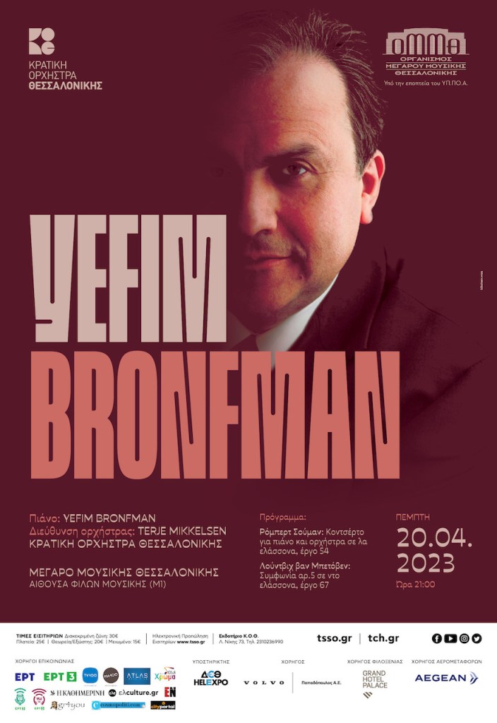 Η Κρατική Ορχήστρα Θεσσαλονίκης και το Μέγαρο Μουσικής Θεσσαλονίκης υποδέχονται στην πόλη μας έναν από τους σπουδαιότερους πιανίστες των ημερών μας, τον Yefim Bronfam.