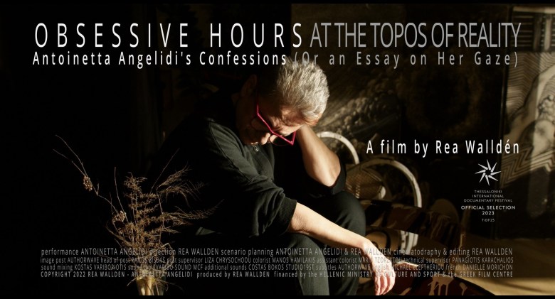 Το κινηματογραφικό πορτραίτο της Αντουανέττας Αγγελίδη «Έμμονες ώρες στον τόπο της πραγματικότητας», σε σκηνοθεσία Ρέας Βαλντέν, που έκανε παγκόσμια πρεμιέρα στο πρόγραμμα «Ανοιχτοί Ορίζοντες» του 25ου Φεστιβάλ Ντοκιμαντέρ Θεσσαλονίκης, θα προβληθεί στην Ταινιοθήκη της Ελλάδος (Ιερά Οδός 48 και Μεγάλου Αλεξάνδρου, Κεραμεικός), από την Πέμπτη 4 Μαΐου 2023, και για μια εβδομάδα, καθημερινά στις 7μμ.