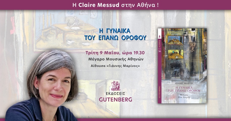 Η συγγραφέας Claire Messud, που την γνωρίσαμε μέσα από το βιβλίο της «Η γυναίκα του επάνω ορόφου» έρχεται στην Αθήνα για μια συζήτηση με την Αργυρώ Μαντόγλου την Τρίτη 9 Μαΐου 2023 και ώρα 19:30 στο Μέγαρο Μουσικής Αθηνών και στην αίθουσα «Γιάννης Μαρίνος».
