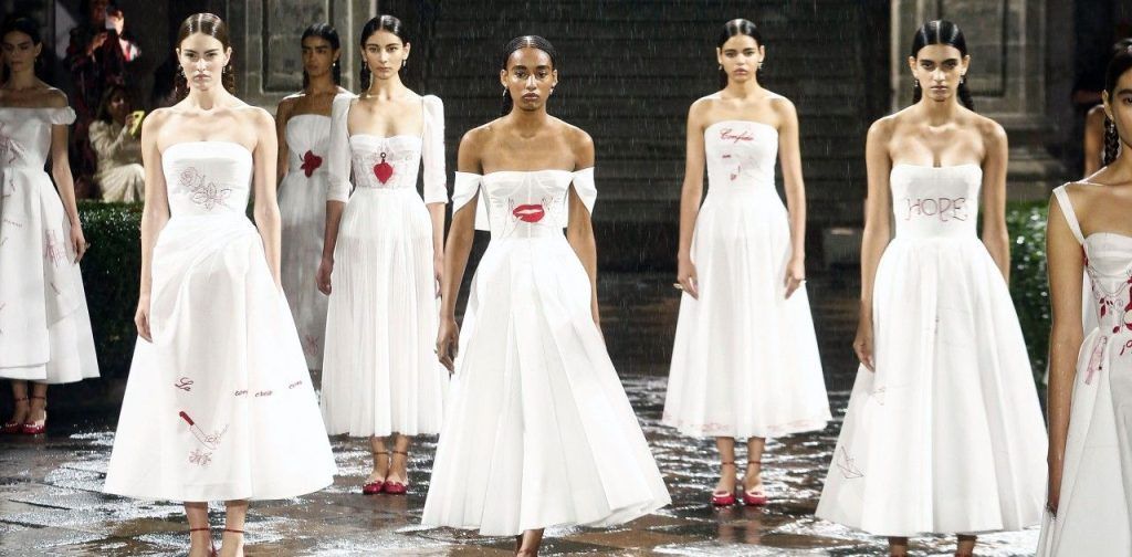 Τα μοντέλα περπάτησαν με φορέματα από μουσελίνα-λευκό καμβά με κεντημένα μηνύματα σε κόκκινη κλωστή, όπως «ελπίδα» και «ζήτω η ζωή μου», σαν απόκοσμες υπάρξεις που θύμιζαν την απώλεια, αργά μα συνάμα έντονα, σαν ένα λεπτό σιγής εν κινήσει, υπό τους ήχους του «τραγουδιού χωρίς φόβο» (Canción sin miedo). Τα λευκά φορέματα με μηνύματα με κόκκινη κλωστή ξεκίνησαν σαν δρώμενο από την Chauvet το 2012 σαν ένας φόρος τιμής σε μια άλλη γυναίκα καλλιτέχνη, την ιταλίδα Pippa Bacca, που δολοφονήθηκε το 2008.