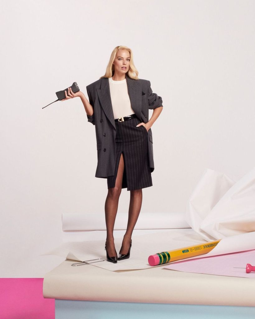 Για τα υπόλοιπα κλικς της φωτογράφησης, η Ρόμπι φόρεσε μία πληθώρα φορεμάτων εμπνευσμένων από την ιστορία της διάσημης κούκλας, μεταξύ των οποίων ένα ροζ two-piece με μαύρα φλοράλ και στρασάκια Versace, ένα πουά strapless φόρεμα Valentino με βολάν, ένα μινιμάλ ιβουάρ φόρεμα Christopher John Rogers, καθώς και ένα ανοιχτό μοβ φόρεμα Carolina Herrera με μαύρο τούλι στη φόδρα.