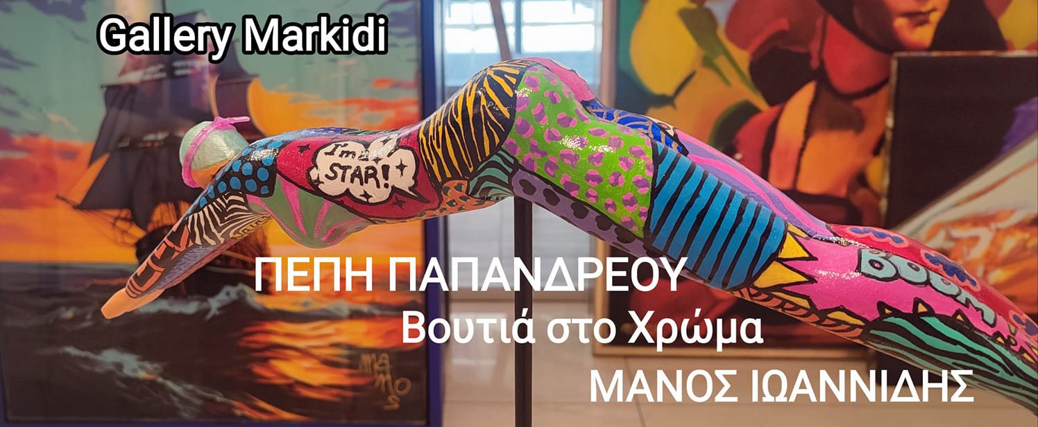 Έργα της εξαιρετικής εικαστικού Δέσποινας Παπανδρέου συνομιλούν με τον χρωστήρα του «Ζωγράφου των Χρωμάτων» Μάνου Ιωαννίδη στην έκθεση » Βουτιά στο Χρώμα » στην γκαλερί Μαρκίδη στη Θεσσαλονίκη.