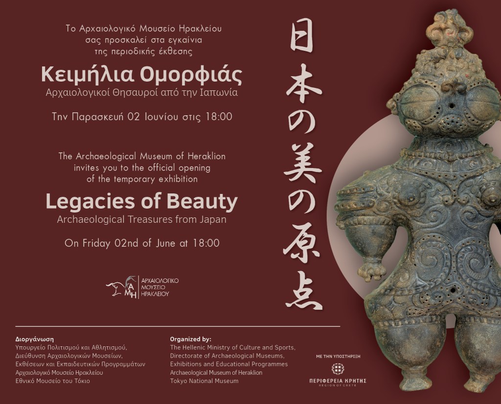 Το Αρχαιολογικό Μουσείο Ηρακλείου υποδέχεται στις 2 Ιουνίου, για πρώτη φορά σε ελληνικό έδαφος, μία ιδιαίτερα σημαντική έκθεση αρχαίων έργων ιαπωνικής τέχνης από τις πολύτιμες συλλογές του Εθνικού Μουσείου του Τόκιο και άλλους πολιτιστικούς φορείς της Ιαπωνίας.