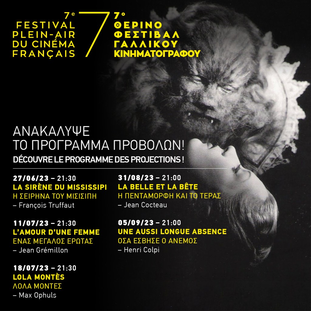 Το πολυαγαπημένο ραντεβού του αθηναϊκού κοινού με τον κλασικό γαλλικό κινηματογράφο, το «Plein-Air», επιστρέφει για έβδομη χρονιά. Η δράση αυτή, μια πρόταση του Γαλλικού Ινστιτούτου Ελλάδος και της Γαλλικής Σχολής Αθηνών, σε συνεργασία με το 13ο Athens Open Air Film Festival, στήνει ξανά την μεγάλη οθόνη της στους υπέροχους κήπους της Γαλλικής Σχολής Αθηνών για πέντε μοναδικές προβολές κάτω από τ’ αστέρια (27 Ιουνίου | 11, 18 Ιουλίου| 31 Αυγούστου | 5 Σεπτεμβρίου), με ελεύθερη είσοδο.
