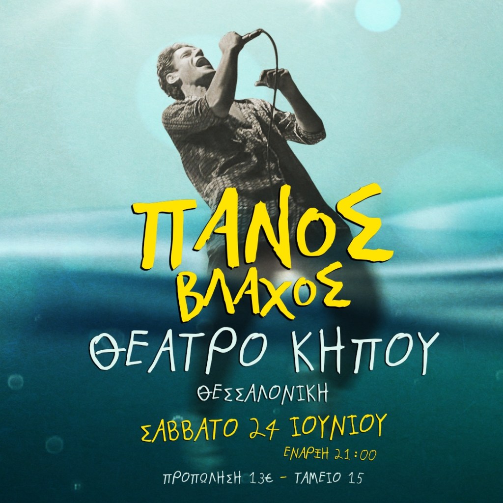 Ο Πάνος Βλάχος για πρώτη φορά στο Δημοτικό Θέατρο Κήπου, στη Θεσσαλονίκη, το Σάββατο 24 Ιουνίου στις 21:00
