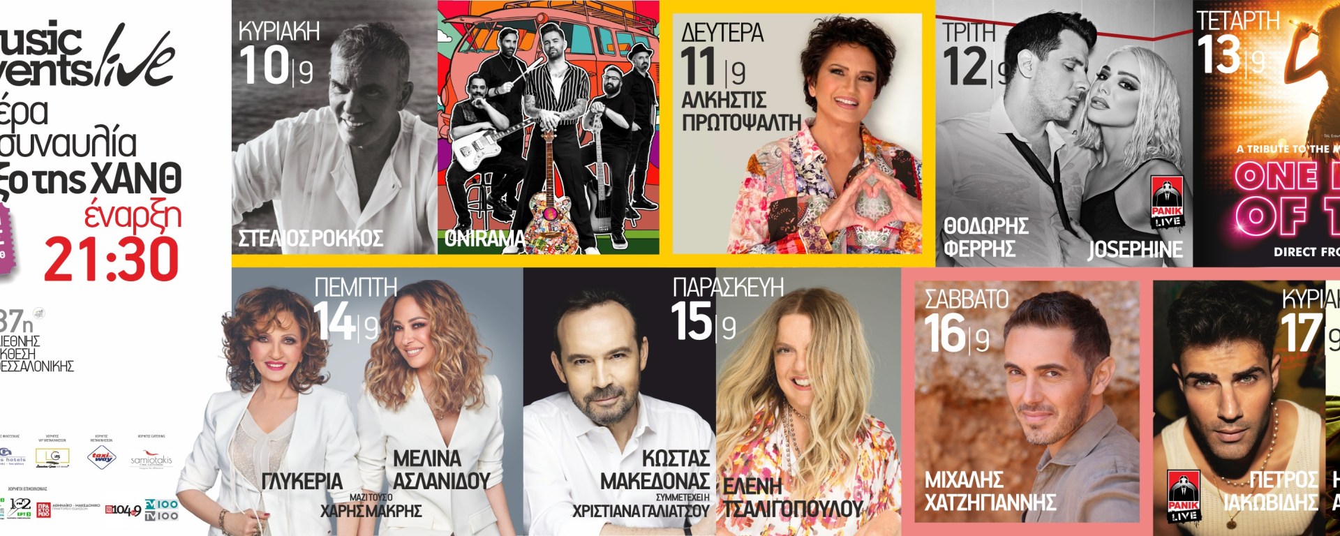 Μια μουσική γιορτή, που φιλοδοξεί να ξεσηκώνει κάθε βράδυ το κοινό της Θεσσαλονίκης, ταξιδεύοντάς το παρέα με μεγάλες επιτυχίες και κορυφαία ονόματα του εγχώριου μουσικού στερεώματος έρχεται στην 87η ΔΕΘ με τα Music Events Live.