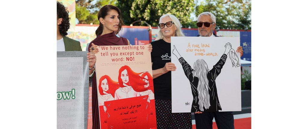 Λίγο πριν την προβολή της ταινίας Tatami, των σκηνοθετών Guy Nattiv και Zar Amir Ebrahimi, το Σάββατο 2 Σεπτεμβρίου στην πρεμιέρα στη Sala Darsena του Φεστιβάλ Βενετίας, επέλεξαν να διαμαρτυρηθούν για τους Ιρανούς καλλιτέχνες, με πανό και πλακάτ οι Caterina Murino, Jane Campion και Fabrizio Ciccuto, και άλλοι. Η ταινία είναι μια συνεργασία μεταξύ ενός Ισραηλινού σκηνοθέτη και μιας Ιρανής ηθοποιού.