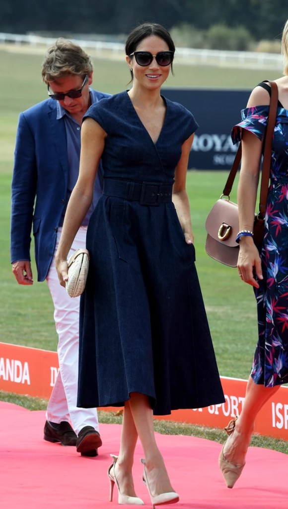Η εμφάνιση της Δούκισσας του Sussex θύμισε ένα από τα προηγούμενα σύνολά της από ένα αθλητικό γεγονός του παρελθόντος: το τζιν φόρεμα σε μήκος μίντι, επίσης από την Carolina Herrera, το οποίο φόρεσε για να υποστηρίξει τον πρίγκιπα Harry στον φιλανθρωπικό αγώνα Polo Sentebale τον Ιούλιο του 2018.
