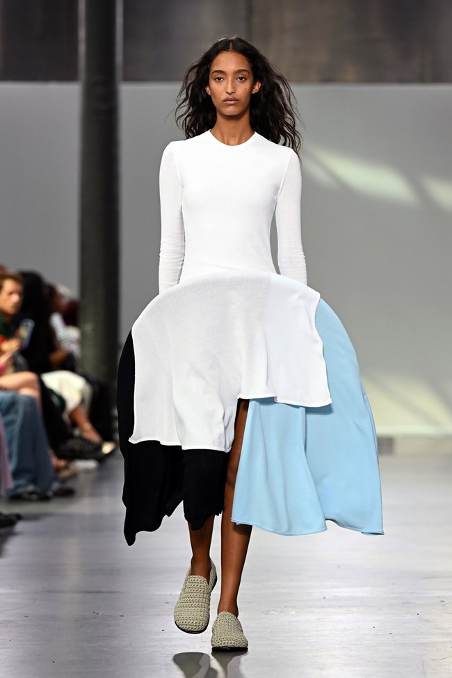 Για τη συλλογή JW Anderson για την Άνοιξη – Καλοκαίρι 2024 ο σχεδιαστής δήλωσε πως πήρε έμπνευση από τα ρούχα που φορούν οι νέοι στον δρόμο και ανάμεσα στις προτάσεις του ξεχωρίζουν: τα υβρίδια biker jacket + hoodie, τα oversized bombers από τα οποία μοιάζει να έχει ξεπηδήσει η εσωτερική επένδυση από πούπουλα αφού τα φτερά γίνονται μέρος της διακόσμησης, τα φουσκωτά cargos που μοιάζουν φτιαγμένα από τα ίδια υλικά με τα bombers, τα αφράτα nylon γυαλιστερά σετ από παντελόνι και τοπ, αλλά και εκείνα τα απαλά πλεκτά φορέματα που κάτι σαν χούλα χουπ ανασηκώνει τη φούστα τους από μέσα.