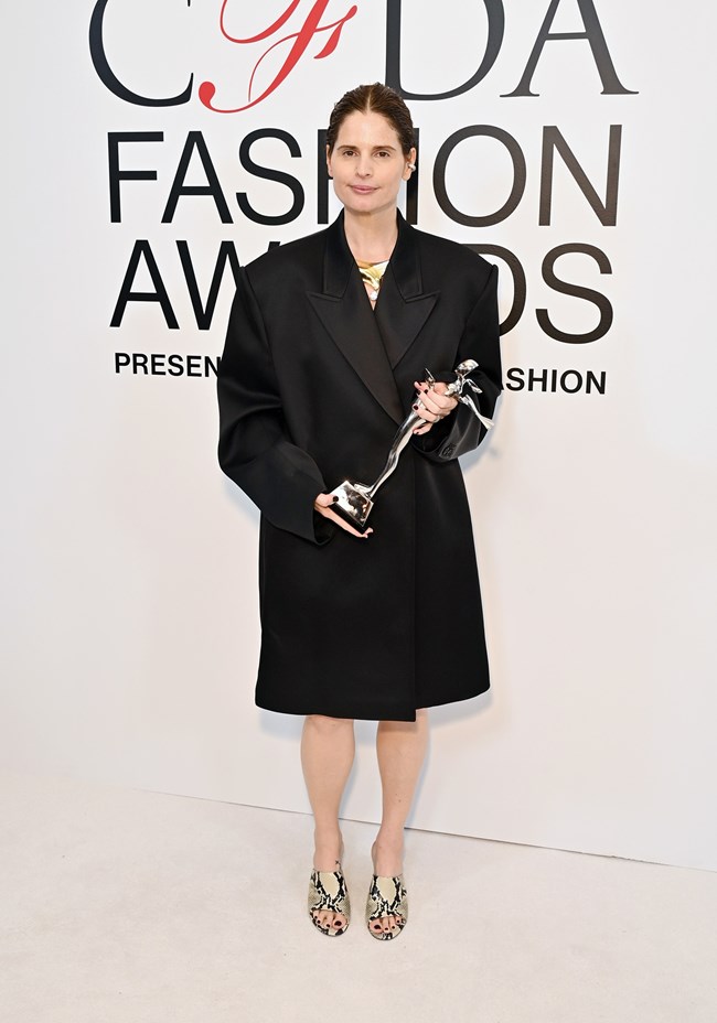 Μεγάλη νικήτρια της βραδιάς, η βασίλισσα της τάσης quiet luxury, Catherine Holstein, ιδρύτρια και καλλιτεχνική διευθύντρια του brand Khaite, που απέσπασε το βραβείο της καλύτερης σχεδιάστριας γυναικείων συλλογών για δεύτερη συνεχόμενη χρονιά.