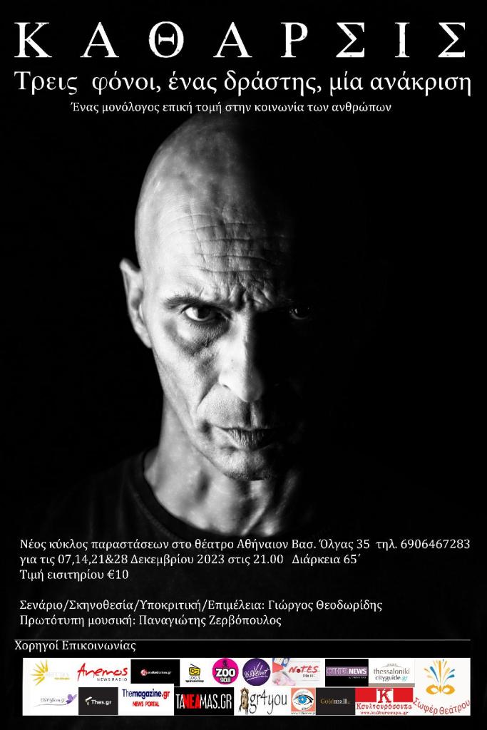 Μετά τη μεγάλη ανταπόκριση και προσέλευση του κοινού, ο Γιώργος Θεοδωρίδης και η παράσταση «Κάθαρσις» επανέρχονται στο Θέατρο Αθήναιον. Ένας εκρηκτικός μονόλογος, που άφησε εντυπώσεις.