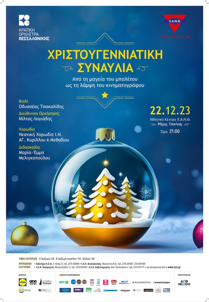 Η καθιερωμένη Χριστουγεννιάτικη συναυλία της Κρατικής Ορχήστρας Θεσσαλονίκης για τη Χ.Α.Ν.Θ. περιλαμβάνει φέτος γνωστές και αγαπημένες μελωδίες των ημερών, που συνδυάζουν τη μαγεία του μπαλέτου με τη λάμψη του κινηματογράφου.