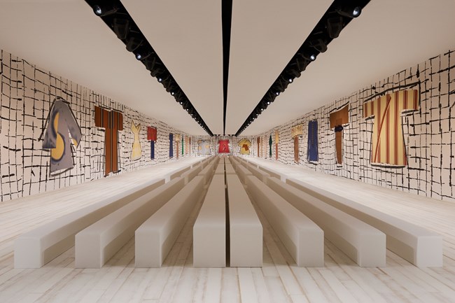 Η Maria Grazia Chiuri συνεργάστηκε με την καλλιτέχνη Isabella Ducrot, που δημιούργησε εκπληκτικές εγκαταστάσεις στον χώρο που πραγματοποιήθηκε το show. 23 υπερμεγέθη φορέματα κάποια ύψους πέντε μέτρων, ταξινομημένα πάνω σε μία σύνθεση που αποτελείται από ακανόνιστες μαύρες λωρίδες, οι οποίες θυμίζουν υφαντά, ηταν η πρόταση της Ducrot για το catwalk.