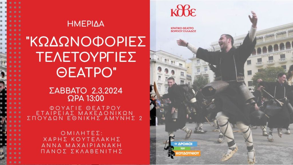 Το ΚΘΒE υποδέχεται το Σάββατο 2 Μαρτίου, στο Φουαγιέ του θεάτρου της Εταιρείας Μακεδονικών Σπουδών την ημερίδα που οργανώνεται, στο πλαίσιο του 6ου Φεστιβάλ Κωδωνοφορίας, από τους «Δρόμους του Κουδουνιού».