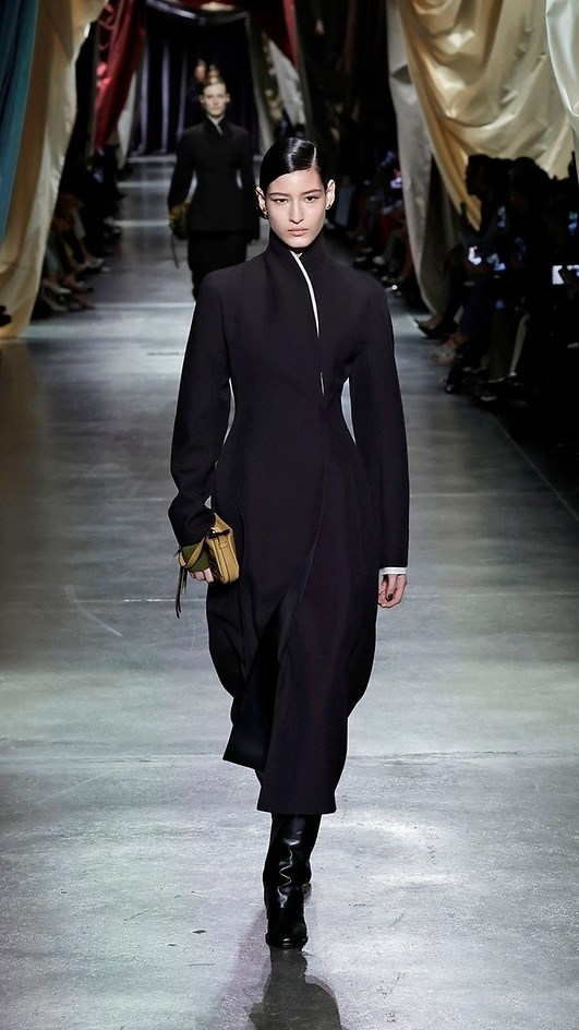 Κομψά παλτό και κοστούμια, πλεκτά κομμάτια, ανάλαφρα φορέματα σε ίσια γραμμή, relaxed παντελόνια και glossy δερμάτινα τζάκετ ή shearling coats, και σε πολλά looks ένα smart twist που αναλαμβάνει να κάνει upscale την αίσθηση απλότητας και οικειότητας που κουβαλάνε αυτά τα ρούχα. Για παράδειγμα, το λάστιχο από τη μέση ενός καλσόν προεξέχει από μία εφαρμοστή μίνι φούστα χωρίς, ωστόσο, κάτω απ’ αυτή να συνεχίζεται το υπόλοιπο (καλσόν), ένα πουλόβερ είναι περασμένο μισό πάνω από ένα σακάκι, σαν μπολερό, με τα μανίκια του blazer, όμως, να προεξέχουν μέσα από τα μανίκια του πουλόβερ, γυναικεία κορμάκια δεν κλείνουν μέσα από τα παντελόνια ή φούστες αλλά εμφανίζονται ξεκούμπωτα έξω απ’ αυτά, πλεκτά γιλέκα φοριούνται στους ώμους σαν «ριχτάρια», ενώ το πρόσωπο της Παναγίας από τη σκηνή της Αμώμου Σύλληψης, αλλά και το κεφάλι μίας αρχαιοελληνικής θεότητας αναλαμβάνουν να γίνουν τα μοτίβα σε ημιδιάφανα φορέματα, φούστες και τοπ.