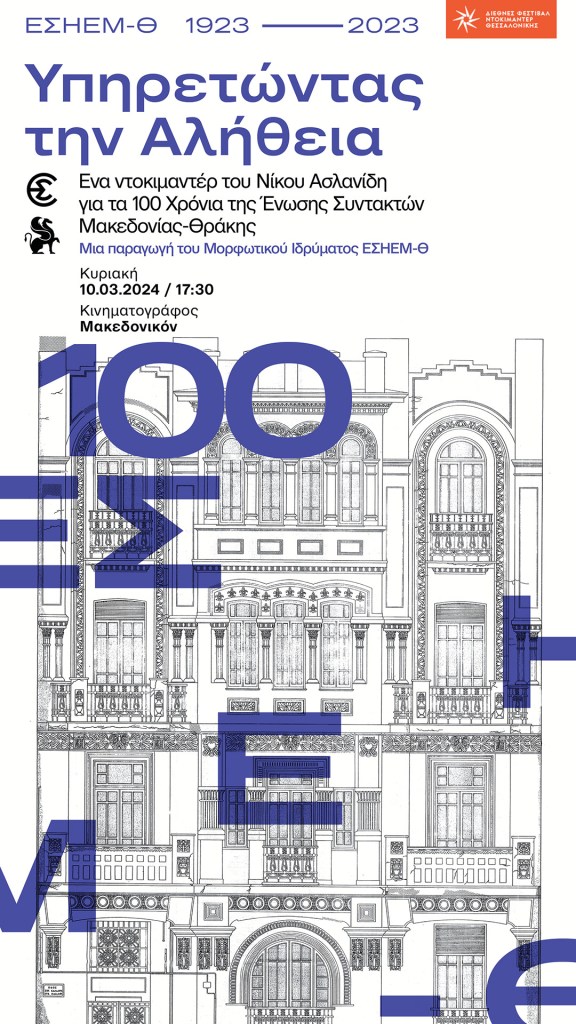 Με μία ταινία-αφιέρωμα στα 100 χρόνια από την ίδρυση της Ένωσης Συντακτών Μακεδονίας-Θράκης το Μορφωτικό Ίδρυμα της ΕΣΗΕΜ-Θ συμμετέχει στο 26ο Φεστιβάλ Ντοκιμαντέρ Θεσσαλονίκης (7–17 Μαρτίου 2024).