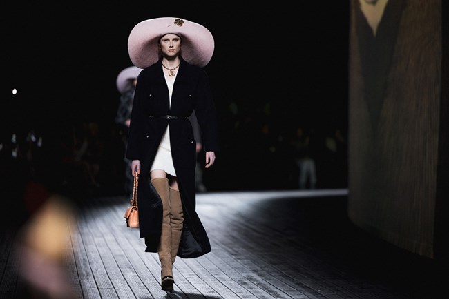 Η συλλογή είχε έντονα ναυτικά στοιχεία αλλά και το tomboyish στιλ της Coco Chanel εκείνης της πρώιμης εποχής. Η γκαρνταρόμπα της Chanel Φ/ Χ 2024-25, όπως την οραματίστηκε η Virginie Viard, αντανακλά το συναίσθημα μίας απόδρασης στην εξοχή, δίπλα στη θάλασσα τον χειμώνα. Μία σινεφιλική αίσθηση που ενισχύεται από τα «θεατρικά» καπέλα με τα τεράστια γείσα και τα πλούσια bijoux, τα μεταξωτά μαντήλια, τις κομψές τσάντες και τα «οπερατικά» γάντια.
